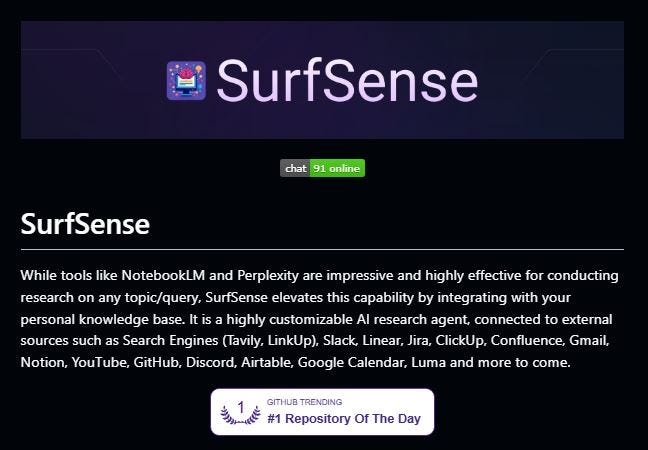 SurfSense isn’t just another RAG implementation. It’s a complete AI research agent that connects to your entire knowledge ecosystem while running entirely on your infrastructure.